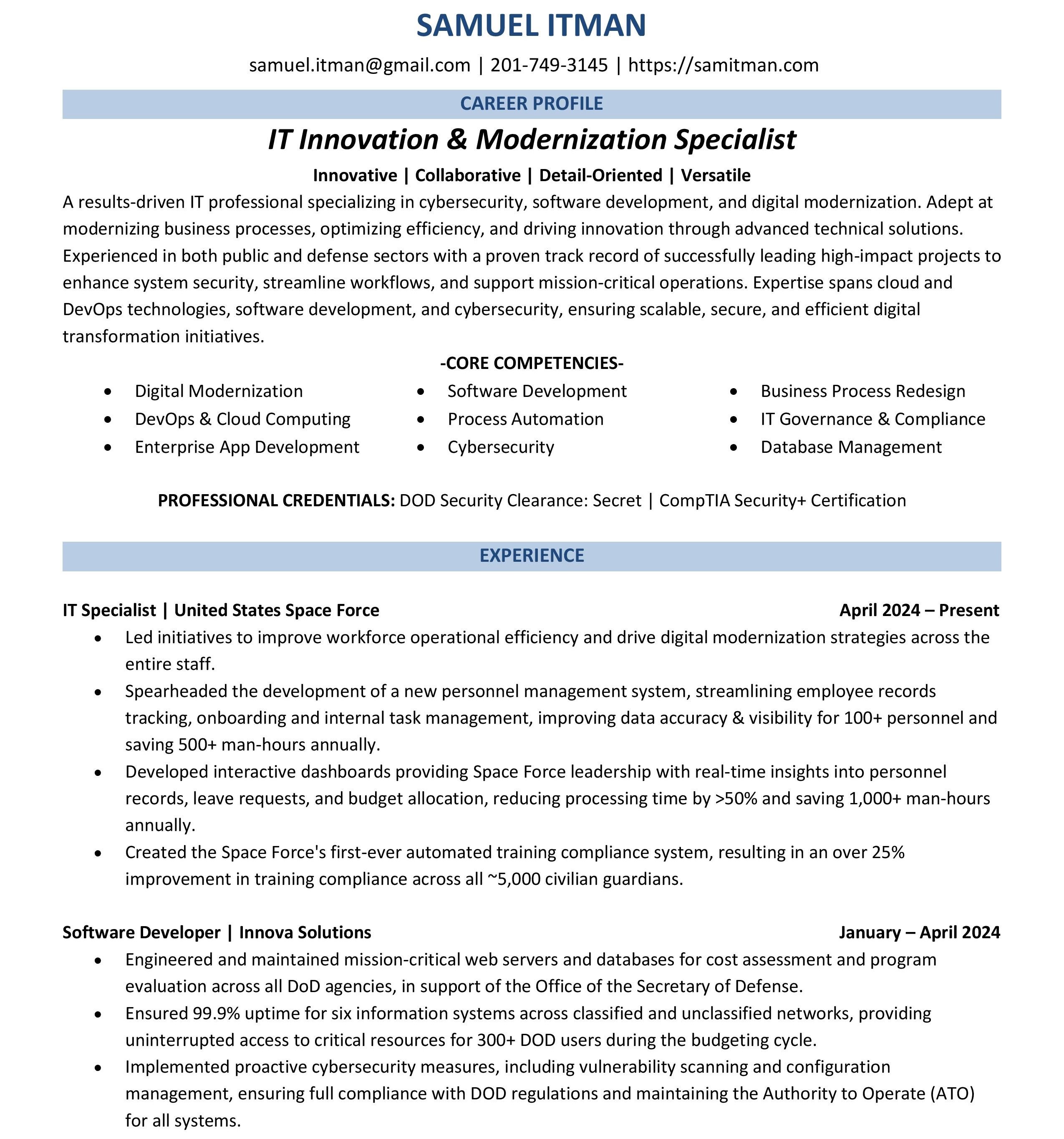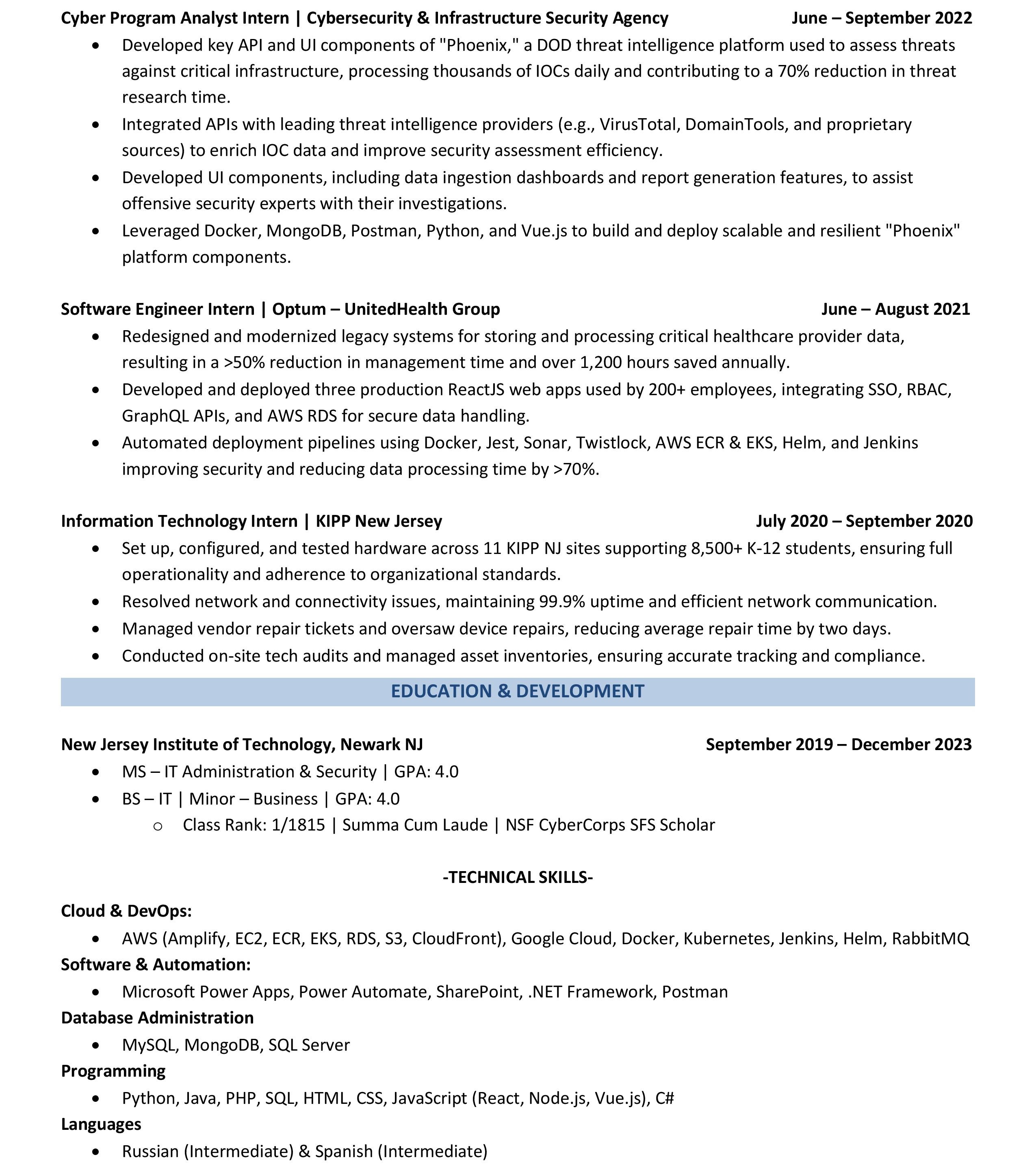 MS IT Administration & Security, BS Information Technology, DOD Secret Clearance, Security+